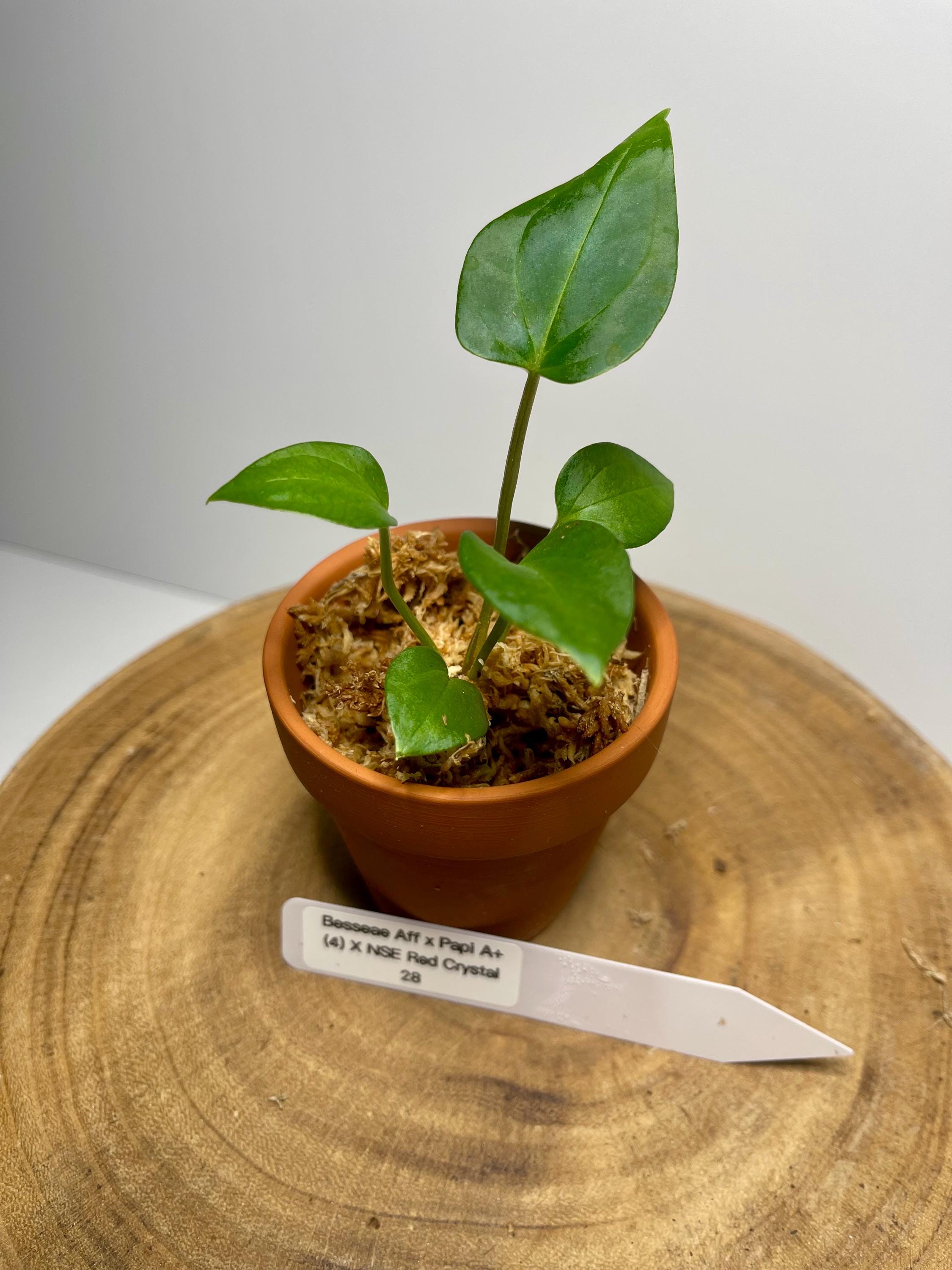 This listing is for one hybrid seedling, which is a cross of besseae aff x papi A+ (4) and NSE Red Crystal, originally bred by Kirk at E&E Plants here in San Antonio, Texas.