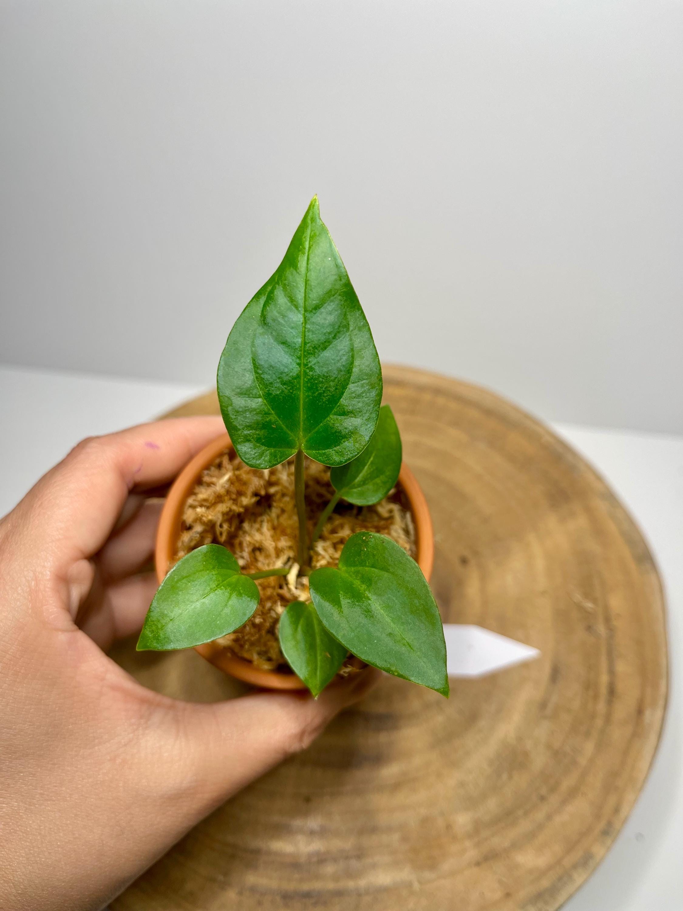 This starter plant is currently growing in sphagnum moss inside a clay pot, and it will be shipped exactly as shown with the moss and pot included.