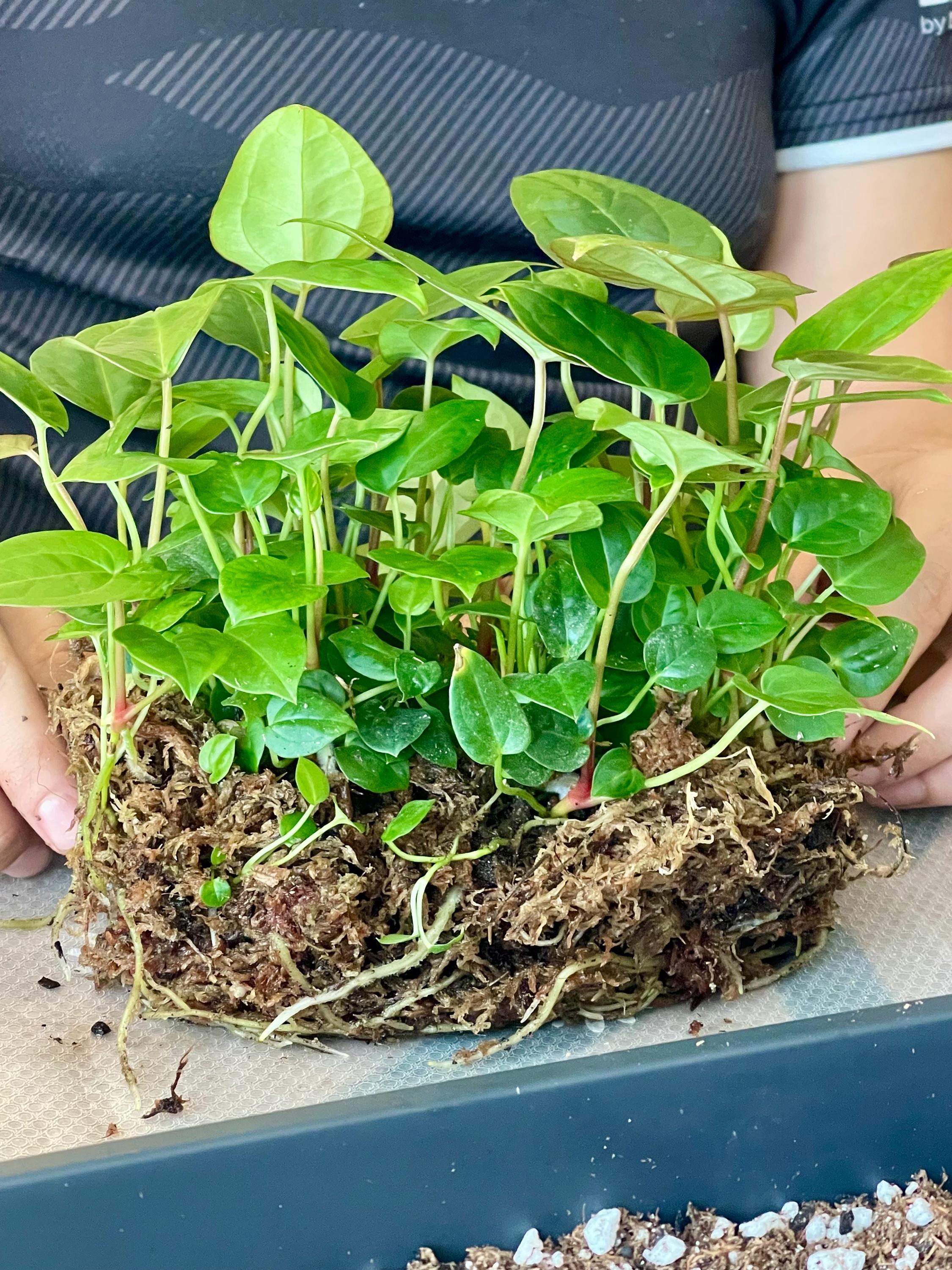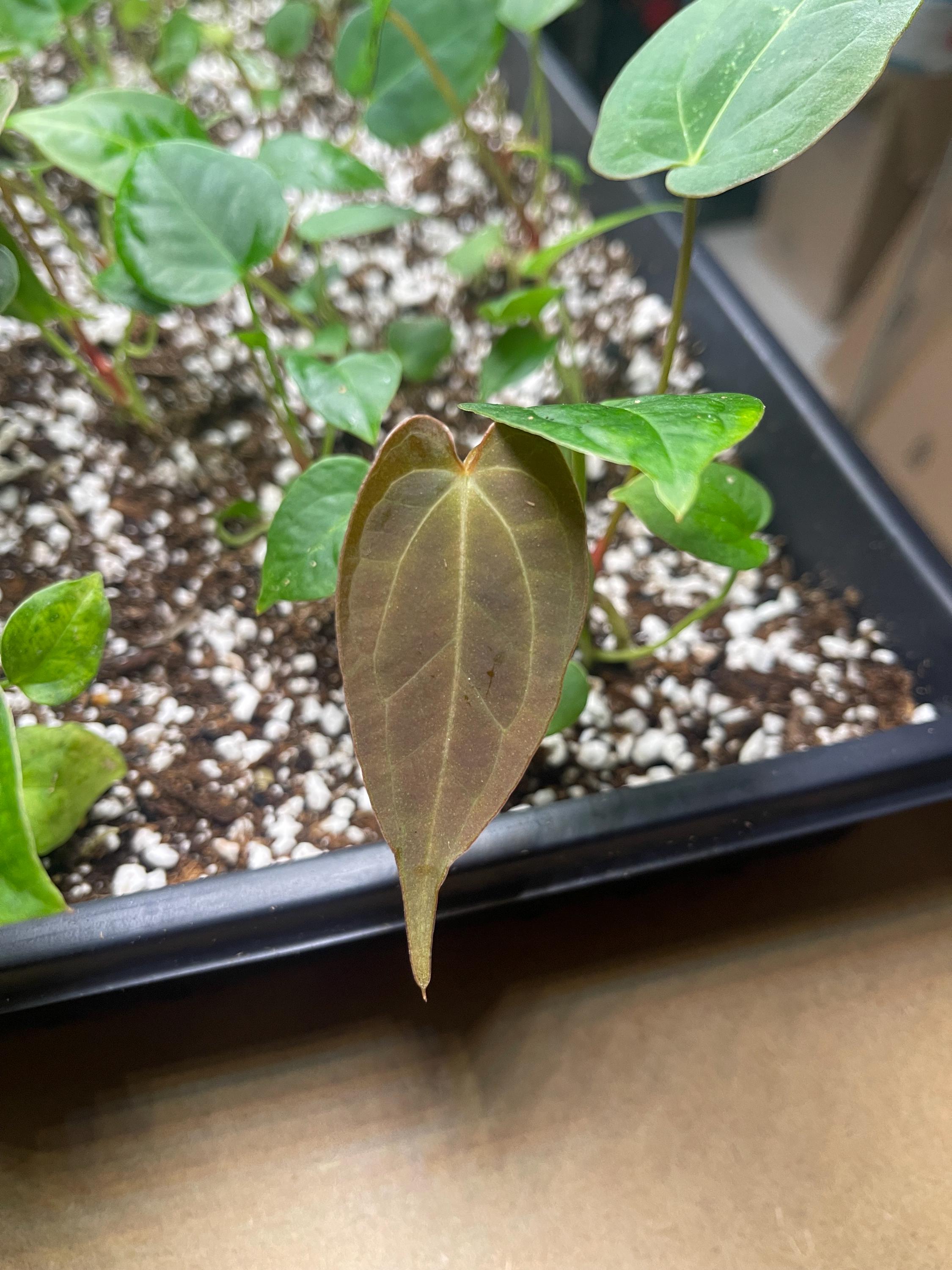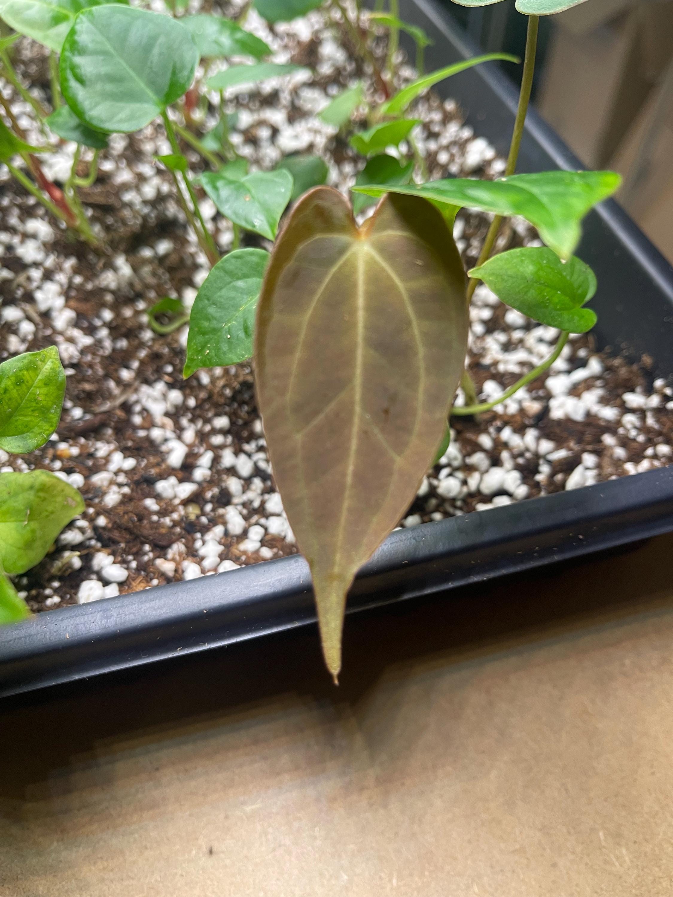 This listing is for Anthurium hybrid seedlings from the cross ** Brielle Zara x Ree Gardens Long Long Bullet**.