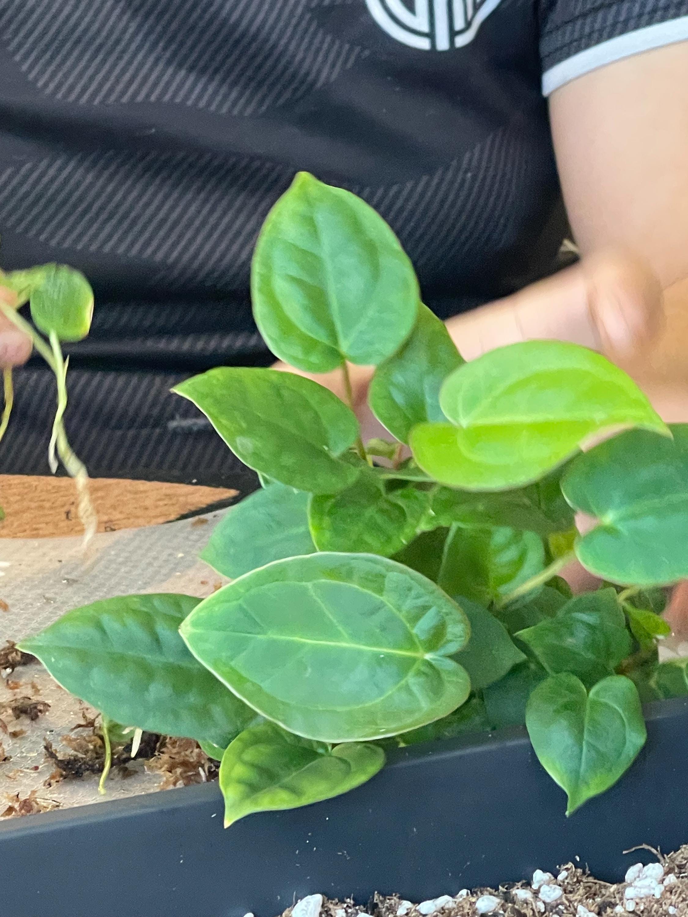 These seedlings show strong early growth and excellent hybrid potential. Both parent lines are known for bold structure, elegant leaf shape, and striking venation. As these plants mature, leaf color, contrast, and form will continue to develop and refine.