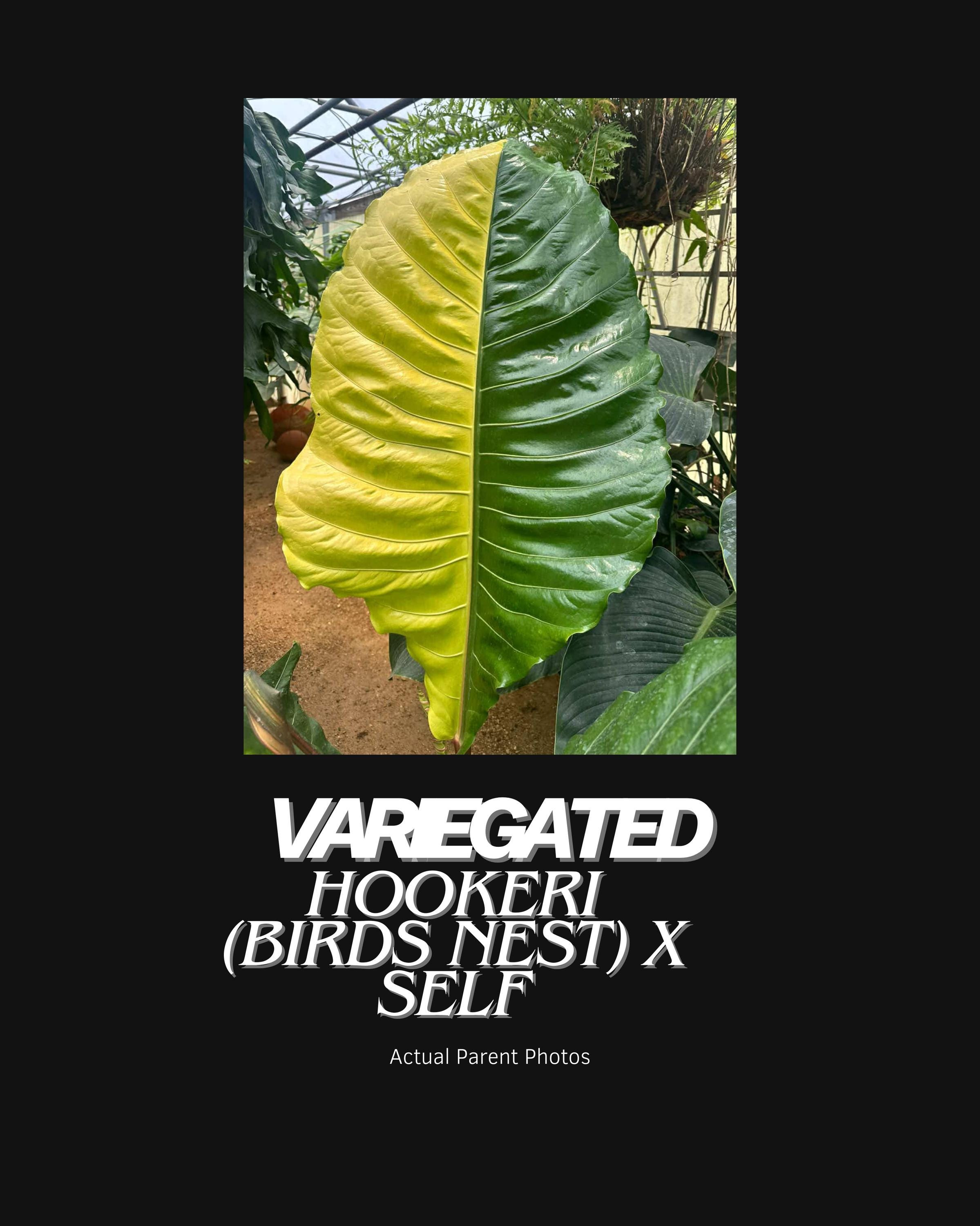 This listing is for one Variegated Anthurium hookeri (Bird’s Nest) – selfed seedling. These young plants carry the potential for the classic hookeri structure—thick, sturdy leaves and an upright “bird’s nest” form—along with variegation that may continue to develop as they grow.