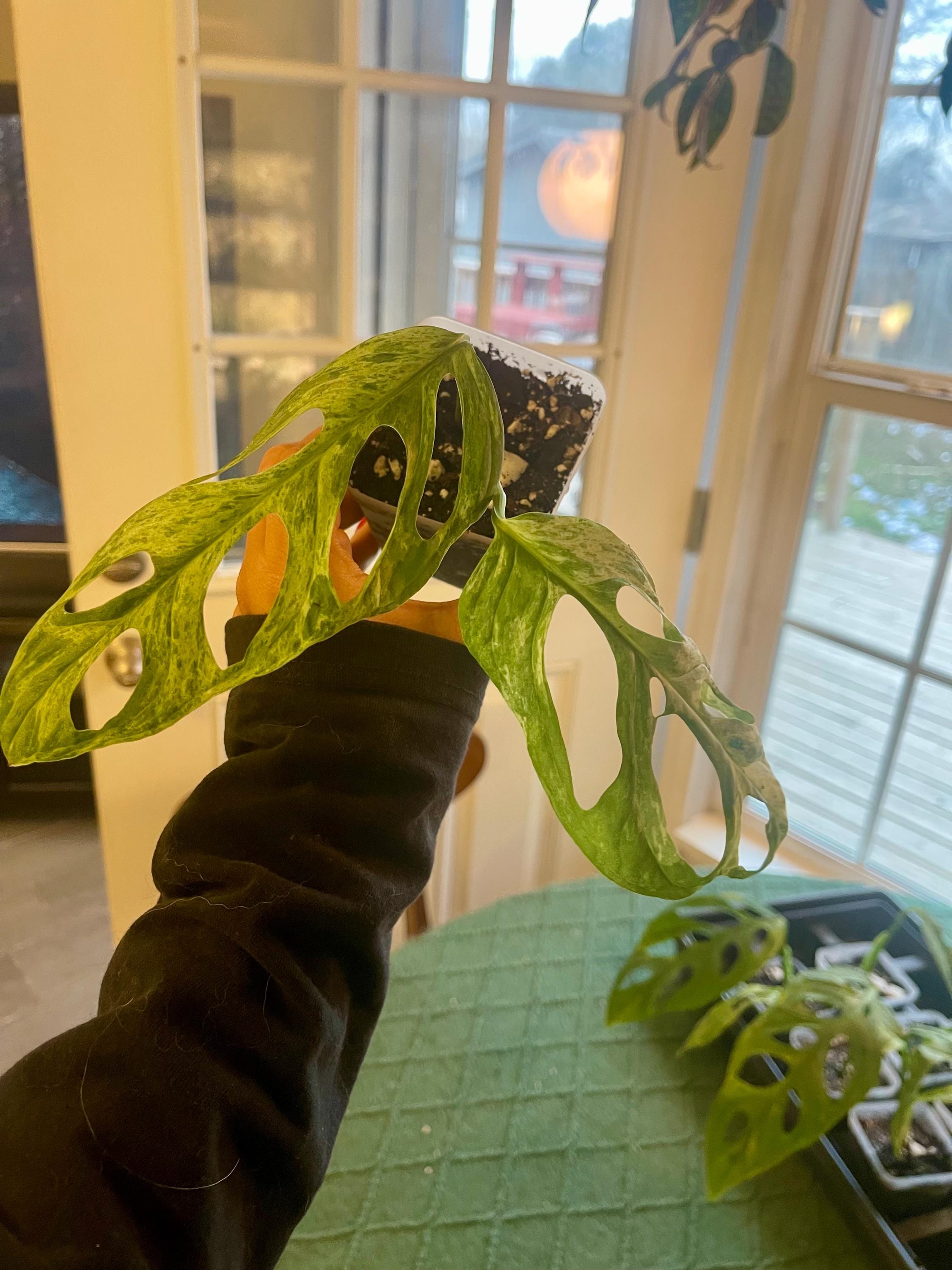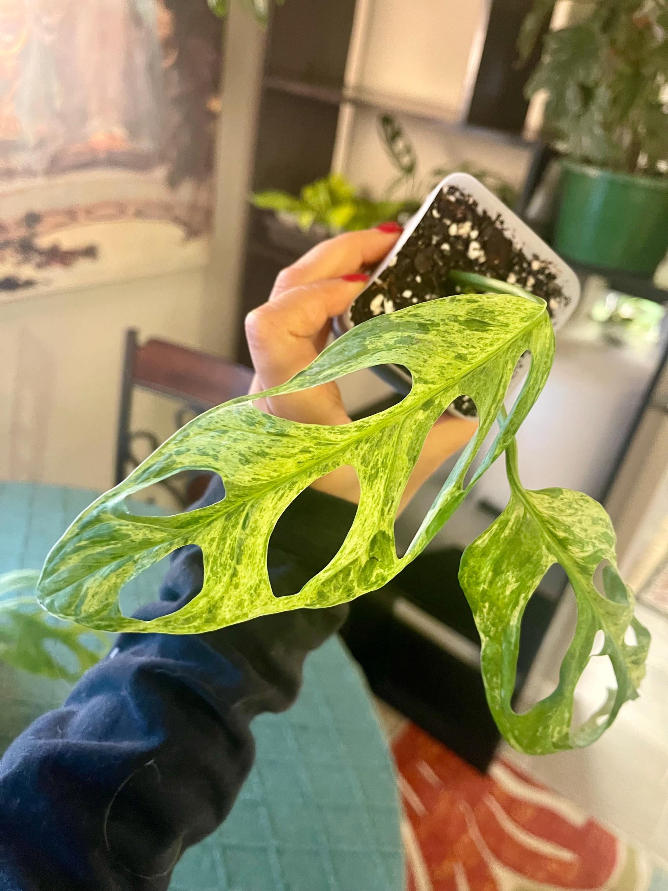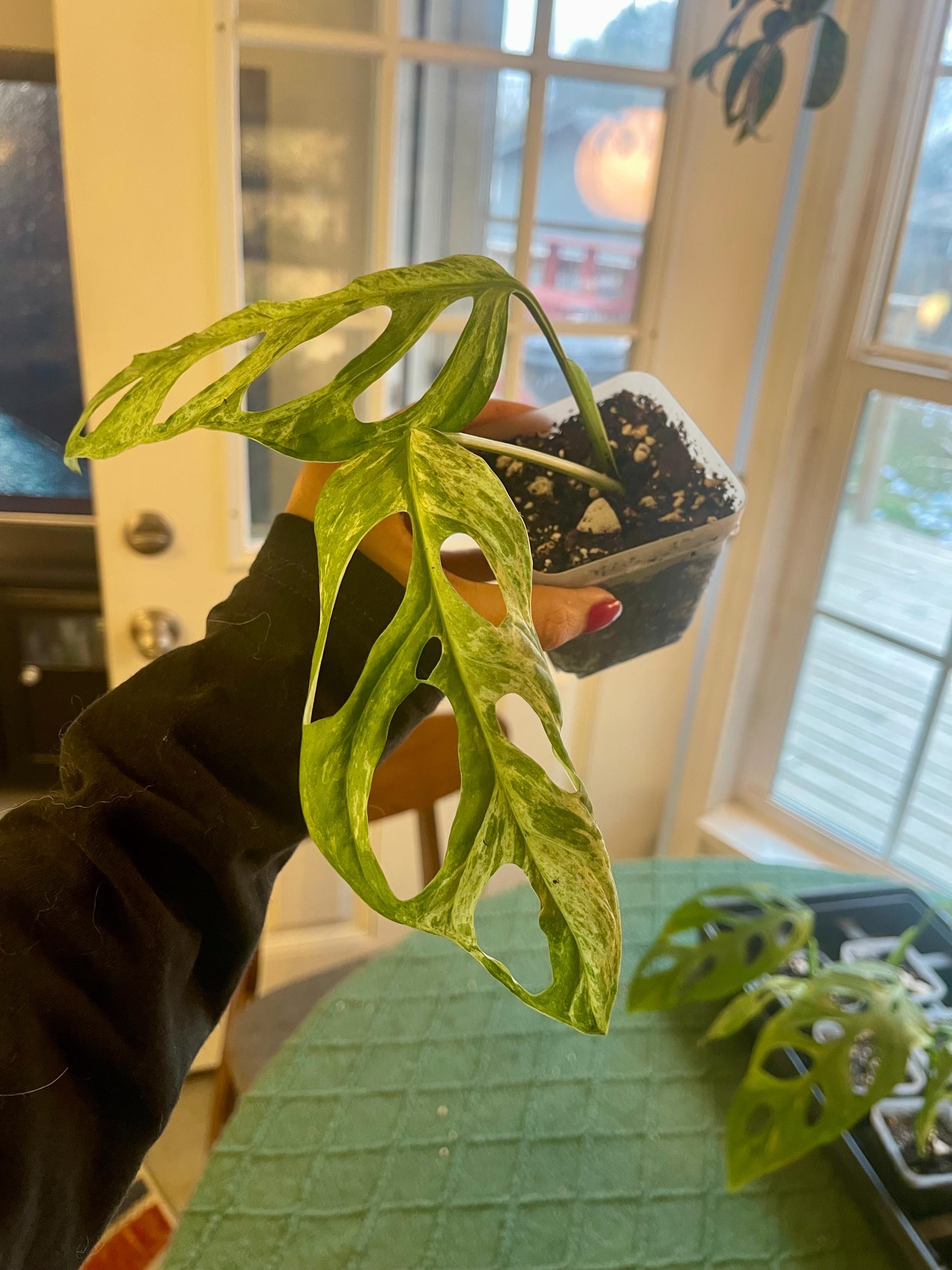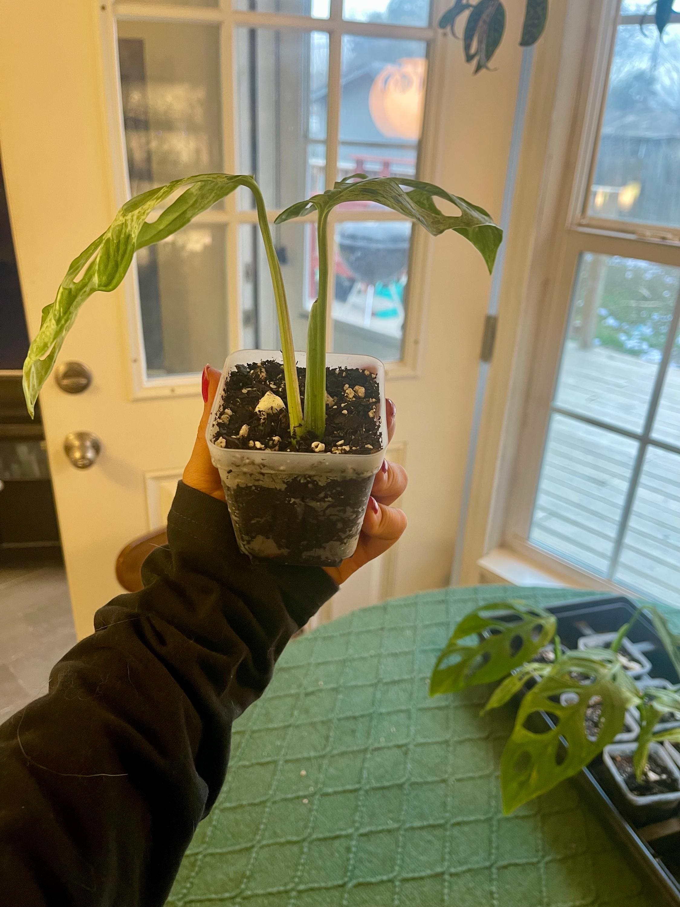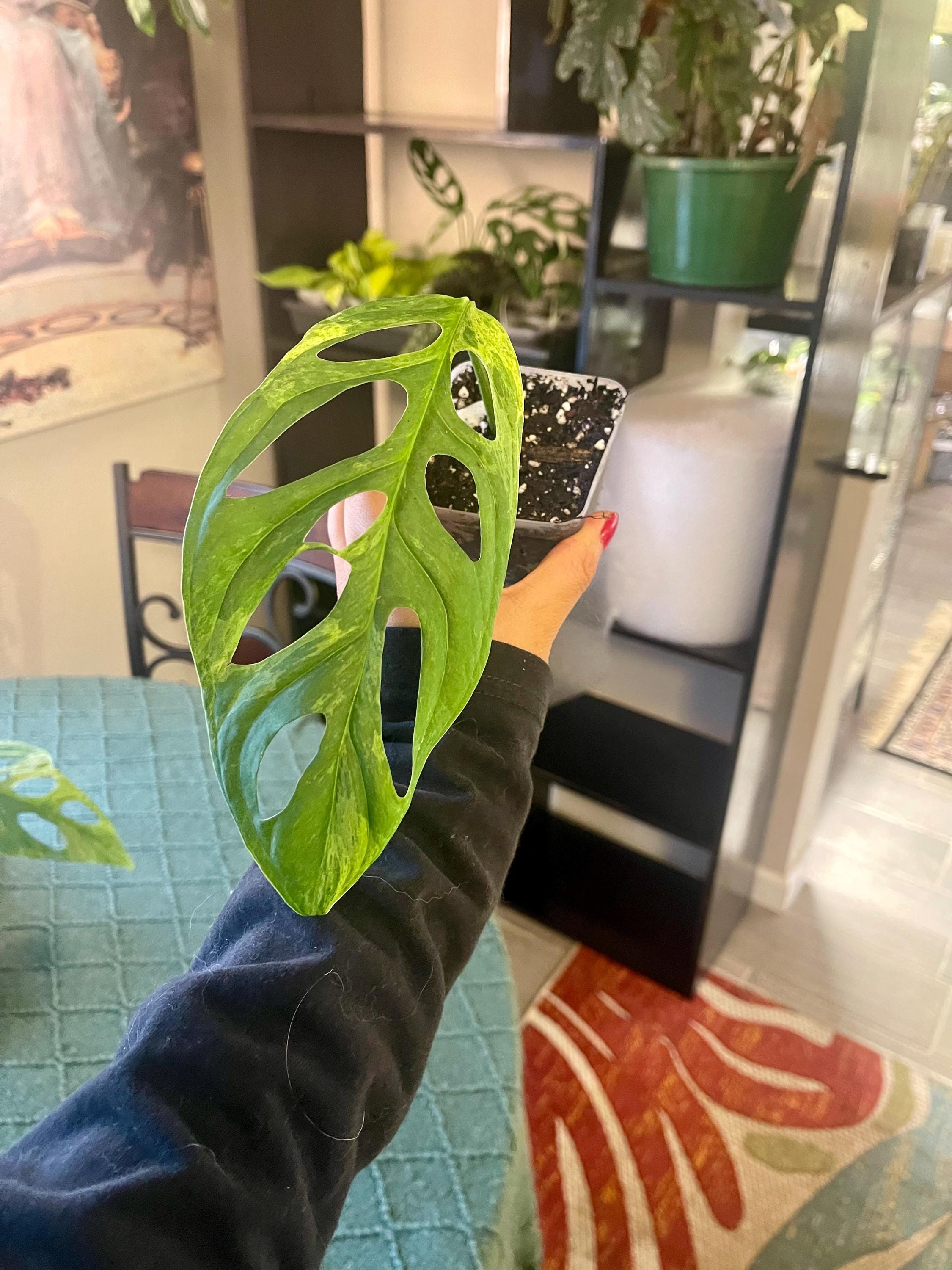 This listing is for a growers choice Variegated Indonesian Mint Monstera adansonii. This variety is known for its minty green variegation layered over large fenestrated leaves. Compared to standard adansonii the leaves on these plants are noticeably larger even at a young stage.